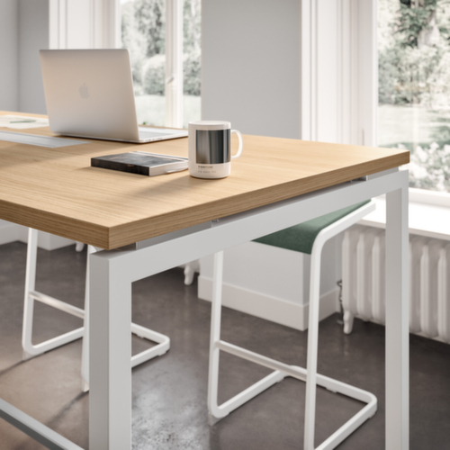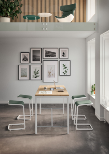"title": "Quadrifoglio Tavolo alto Creo per le riunioni, altezza x larghezza x profondità 1070 x 1800 x 800 mm, pannello quercia",