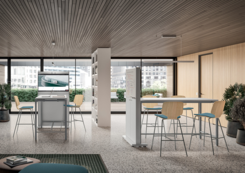 "title": "Quadrifoglio Tavolo alto Creo per le riunioni, altezza x larghezza x profondità 1070 x 1800 x 800 mm, pannello grigio",