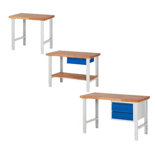 "description": "RAL 7035/RAL 5010, AxlxP 790-1140x1500x700mm, piano faggio, carico max. 750kg, 4gambe, dotazione: 2cassetti, serratura centr., RAL7035, parte ant. RAL5010",