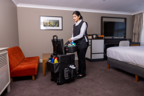 "longDescription": "<h2>Carrello di pulizia</h2><strong>Estremamente maneggevole e robusto per un uso intensivo</strong><br><ul><li><strong>Design compatto</strong> per l'uso in hotel, nella gestione degli edifici e nelle attività di pulizia.</li><li><strong>Assolutamente durevole</strong> - con rivestimento in Teflon contro acqua, olio e macchie</li><li><strong>Facile da spostare</strong> grazie alle ruote con cuscinetti a sfera e al pratico manico telescopico in alluminio</li><li><strong>Molto spazio</strong>: diversi scomparti per i vari utensili da lavoro e un portaoggetti rimovibile</li><li><strong>Flessibili e sicuri</strong>: i divisori possono essere divisi individualmente e hanno una tenuta salda durante il trasporto.</li></ul>",