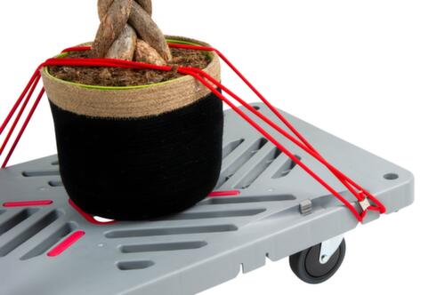 "description": "carico max. 330kg, Lxl sup. carico 935x605mm, piastra di plastica, piattaforma traforato c. foro di presa, maniglione di spinta pieghevole, grigio, 2ruote orient./2fisse, gommatura in gomma solida",