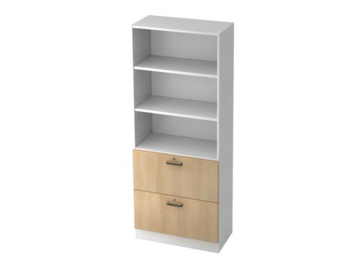 "metaDescription": "Scaffalatura combinata Up and Down con cassetti HR, 3 scomparti scaffale, larghezza 800 mm, bianco/quercia - AxlxP 2000x800x420mm, 3altezza raccoglitore scaffale, 2schedari per cartelle sospese, corpo bianco, parte ant. quercia",