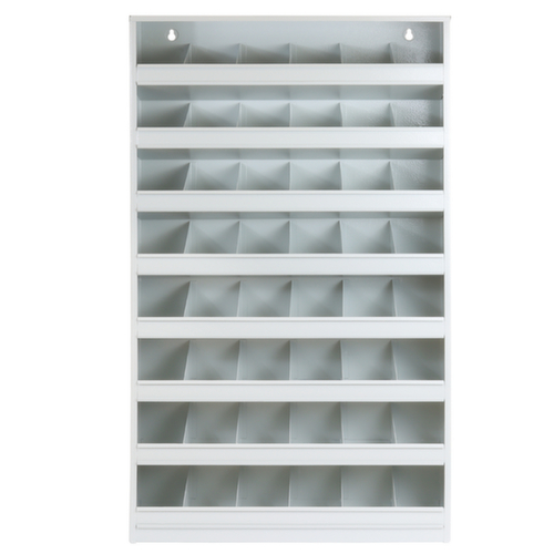 "description": "HxLxP 850x500x125 mm, con 48 vaschette, in metallo verniciato a polvere, in vari colori.",