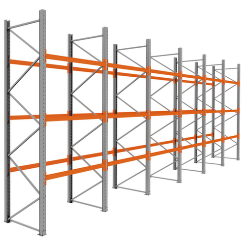 le misure più importanti dello scaffale per pallet in breve:6 campi scaffale ciascuno con 3 piano/i con traverse offrono capacità di stoccaggio per un totale di 48 pallet. altezza scomparto regolabile a intervalli di 70 mm a seconda della finalità d’uso e delle esigenze. Ciascun campo scaffale offre 8 posti pallet (incl. stoccaggio a terra). stoccaggio longitudinale. le traverse longitudinali vengono agganciate ai telai di supporto con griffe a tre ganci e dispositivo di protezione contro il sollevamento. utilizzo su un lato - concepito per la collocazione sulla parete. elevata stabilità grazie alle travi portanti con profili scatolati chiusi. struttura in acciaio. supporto con rivestimento in zinco anticorrosione. piani in RAL2004 arancio puro.