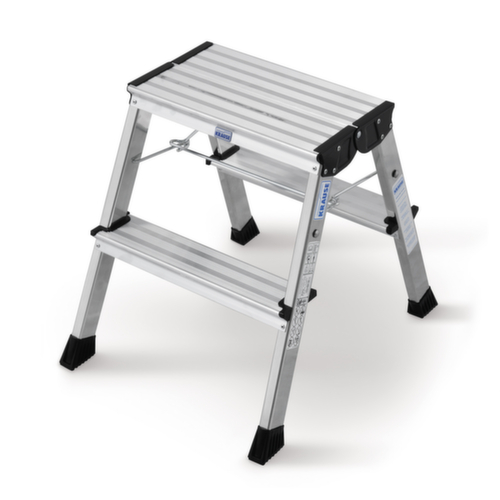 "metaDescription": "scaletta pieghevole con ruote - alluminio, alluminio argentato, AxP pedana 0,44x20m, 2x2gradini, 4ruote a molla",