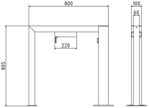 "description": "L 2100mm, tubo quadrato zincato a fuoco/verniciato a polvere, nero, c. presa elettrica",