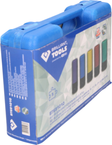 "longDescription": "Set di 5 pezzi, robusto set di prese, di altissima qualità, adatto per avvitatori a impulsi, 15 mm, 17 mm, 19 mm, 21 mm, 22 mm,Il robustissimo set di prese elettriche BT691010 della BRILLIANT TOOLS non dovrebbe mancare in nessun garage o officina. L'altissima qualità e stabilità è ottenuta grazie all'acciaio speciale al cromo-molibdeno, che non vi deluderà nemmeno nelle applicazioni più difficili. L'eccellente lavorazione garantisce un montaggio preciso e un'elevata trasmissione di potenza. Che si tratti di avvitatori a impulsi o di cricchetti, le bussole sono ideali per entrambi gli azionamenti. LA NOSTRA QUALITÀ: BRILLANTE, I NOSTRI PREZZI: SMART, Ogni strumento contiene più di un quarto di secolo di esperienza dei nostri esperti. Questa qualità senza compromessi, strumenti professionali con la massima qualità per il duro lavoro quotidiano, è una delle ricette del successo per noi. Facciamo a meno di una grande struttura di vendita e di attività di marketing stravaganti e possiamo quindi offrirvi i prodotti ad un rapporto prezzo/prestazioni sensazionalmente favorevole. Risparmiate soldi senza abbassare i vostri standard di qualità!,Uno strumento di qualità alimentato da KS TOOLS.<br>",