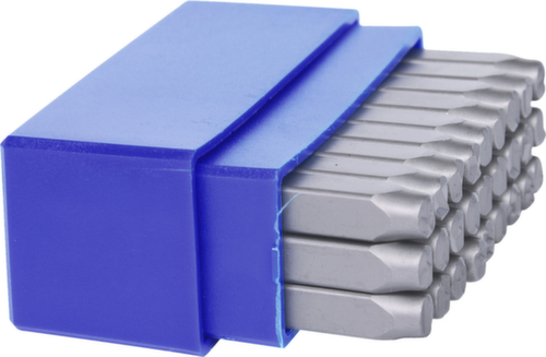 "longDescription": "Lettering secondo DIN 1451, lettere \"A - Z\", per martellare in materiali fino a 100 kp / mm² di resistenza, gambo quadrato, altezza lettering 5 - 6mm, inciso a punta, in scatola di plastica<br>",