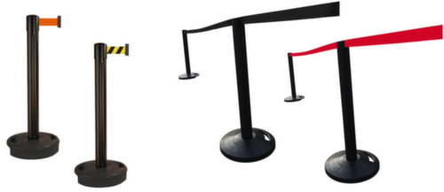 "longDescription": "<h2>Supporto per cintura</h2><strong>Resistente alle intemperie e adatto all'uso esterno<br>La barriera perfetta e flessibile!</strong><br><ul><li><strong>Flessibilità d'uso</strong> - ritorno controllato del nastro grazie al nastro autoretrattile.</li><li><strong>Durevole</strong> - montanti in robusto PVC</li></ul><br><strong>La scelta è vostra:</strong><br><ul><li><strong>Ancora più stabile</strong>: base in PVC da riempire con acqua, sabbia o cemento o in gomma piena.</li></ul>",