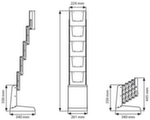 Le misure più importanti del supporto per brochure in breve:Il supporto per brochure può essere piegato senza dover rimuovere le brochure dagli scomparti. Inoltre, l’operazione non richiede attrezzi. utilizzo su 1 lato. 5 piano/i di appoggio in plastica in trasparente. struttura in alluminio in grigio argento.
