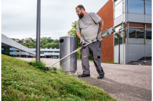 Le aree difficili da raggiungere, come sotto le panchine dei parchi, intorno ai cartelli stradali, ai delineatori stradali o persino ai cordoli, sono la specialità del nostro tosaerba a batteria LT 380/36 Bp. Ma anche su pendii e in aree più ampie, questo leggero gruppo elettrogeno è un'alternativa convincente ai decespugliatori a benzina e, a differenza di questi, può essere utilizzato senza problemi anche in aree sensibili al rumore. L'LT 380/36 Bp ha un'ampia larghezza di taglio e resistenza, lavora senza gas di scarico e con basse vibrazioni e si distingue anche per l'impugnatura ergonomica regolabile e la distribuzione ottimale del peso. In questo modo è possibile lavorare a lungo e senza fatica.