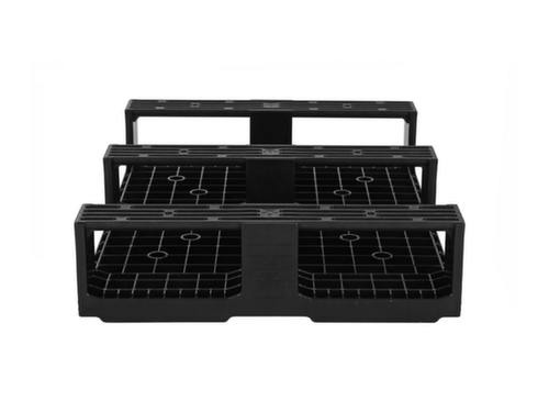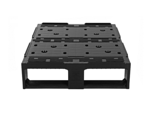 "metaDescription": "Tavolozza di mezza misura D2 con bordo, polipropilene, lunghezza x larghezza 800 x 600 mm - PP, AxLxl 160x800x600mm, carico max. statico 2000kg, pattini, piano superiore traforati, bordo di sicurezza, nero",