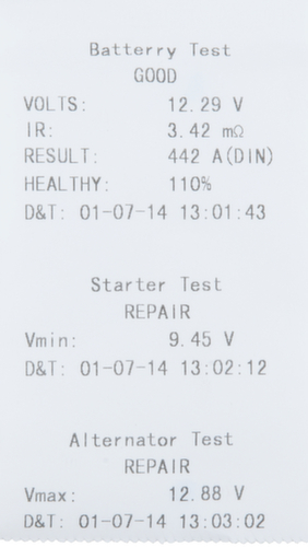 "metaTitle": "Tester digitale della batteria e del sistema di ricarica a 12V con stampante integrata - Strumenti di misura",