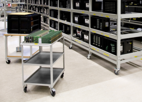 "metaTitle": "Treston Carrello a ripiani ESD, carico max. 90 kg, 3 piani - Carrelli a ripiani",