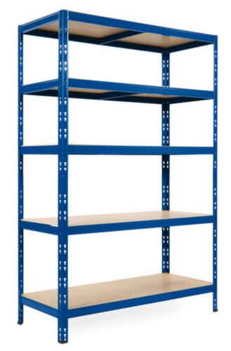 le misure più importanti dello scaffale per magazzino UDOBÄR in breve:struttura in metallo, supporto in RAL5017 blu traffico, piani in naturale.
