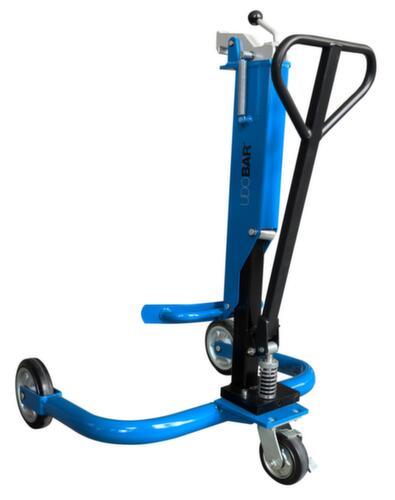 "metaDescription": "UDOBÄR Sollevatore idraulico del tamburo - load capacity 300 kg, steel, RAL5017, for 2 lifting heights, with rubber or PU tires",