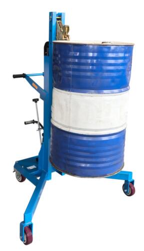 le misure più importanti di UDOBÄR del UDOBÄR sollevatore per fusti in breve:ruote orientabili con gommatura poliuretano, Ø 125 mm. ruote per forca con gommatura poliuretano, larghezza x Ø 40 x 125 mm. altezza di sollevamento 500 mm. struttura in acciaio con verniciatura a polvere a prova di urti e graffi in RAL5017 blu traffico. uso sollevamento manuale/idraulico. dotato di pompa idraulica per operazioni di sollevamento efficienti e sempre affidabili.