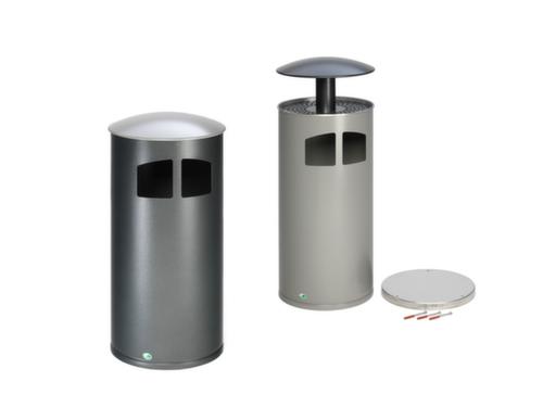 "longDescription": "<h2>Cestino per rifiuti</h2><strong>con 2 aperture di inserimento</strong><br><ul><li><strong>Durevole e antiruggine</strong> - in lamiera d'acciaio zincata</li><li><strong>Superficie resistente ai graffi</strong> grazie alla verniciatura a polvere</li><li><strong>Robusto e durevole</strong> - con contenitore interno zincato</li><li><strong>Facile da montare</strong> - con tondo rettificato per la tassellatura</li><li><strong>Pronto per l'uso immediato</strong> - materiale di montaggio incluso</li></ul><br><strong>La scelta è vostra:</strong><br><ul><li><strong>Adatto ai fumatori</strong> - in opzione con posacenere integrato</li></ul>",