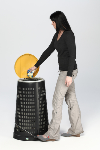 "description": "p. 1x120l, AxØ 880x380-520mm, corpo PP nero, coperchio PP giallo, forato",