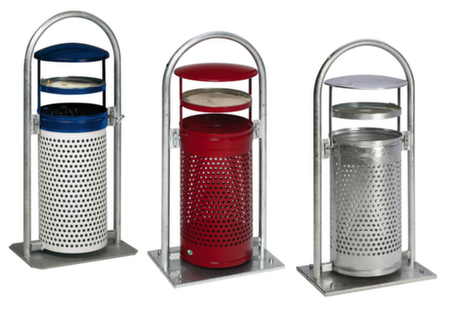 "description": "c. Supporto ad arco tubolare, AxlxP 1080x580x380mm, capacità contenitore per rifiuti 65l, corpo zincato a fuoco, c. tetto protettivo",