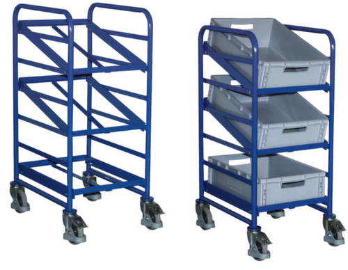 "description": "carico max. 200kg, 3ripiano(i), Lxl sup. carico 410x610mm, acciaiopiastra, c. telaio angolare, inclinato, con 3contenitori, Euronorm, RAL5010, gommatura in TPE",