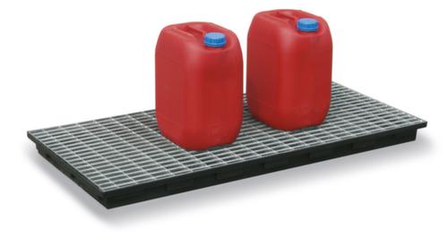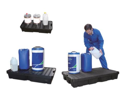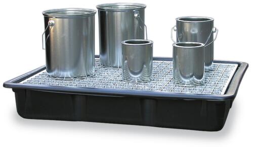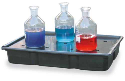 "longDescription": "<h2>Vasca di raccolta in PE</h2><strong>Conservazione a prova di perdite di piccoli contenitori</strong><br><ul><li>Idoneo per sostanze inquinanti e corrosive</li><li><strong>Robusto e durevole</strong> - realizzato in polietilene</li></ul><br><strong>La scelta è vostra:</strong><br><ul><li><strong>Per un volume di raccolta ancora maggiore</strong> - in opzione con griglia rimovibile in PE o acciaio zincato</li></ul><br><strong>Disposizioni!</strong><br><br>Struttura delle vasche approvata dalle autorità. Impiego per lo stoccaggio al coperto di sostanze aggressive e inquinanti dell’acqua.<br>",