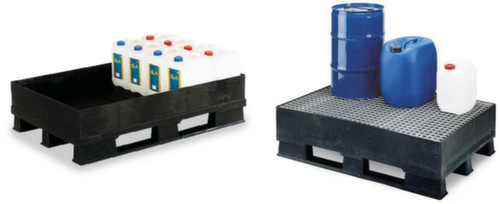 "metaDescription": "Vaschetta di raccolta per pallet - in PE, per 4 fusti da 60 litri, con o senza griglie",